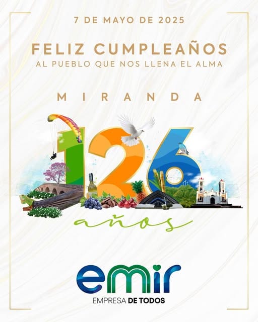 EMMIR, desde hace 35 años ha proporcionado servicios públicos de calidad que mejoran la calidad de vida de los mirandeños. Hoy nos unimos a esta celebración y deseamos para nuestra querida Miranda un muy feliz cumpleaños.