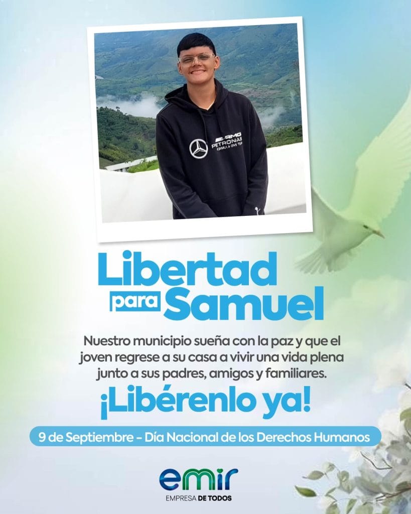 Por la vida, la libertad y la integridad del joven Samuel Londoño Escobar. EMMIR reafirma su compromiso y se une en profunda solidaridad con su familia, junto al clamor de todos los mirandeños, esperando con esperanza su pronto regreso, sano y salvo, al seno de su hogar.
